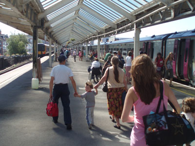 ... and here are the respectable crowds leaving the station at Weymouth for a great day on the beach.