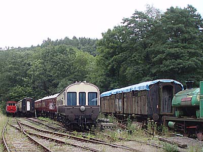 First impressions count, and this really wasn't good. We got the immediate feeling of a line struggling to survive, and indeed the yard at Norchard, through which we walked to the operational platform, was stocked with old carriages many of which gave the impression of quietly rotting away. Paintwork was not only faded but flaking and crumbling off the majority of stock, some were covered in tarpaulins, and the trackwork itself was grassy. I expect to see some of this (preservation and restoration is not always a tidy business), but this place was "something else"!