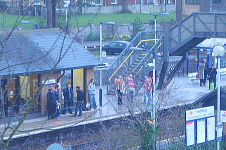 Lest we forget. We're doing this for the passengers, or wannabe passengers. Looking out of the room in Bridge House as it got dark - early evening - I snapped a picture of people waiting for theire trains. No doubt they were headed for Bath or Bristol - no TransWilts was due for an hour for Chippenham and Swindon.