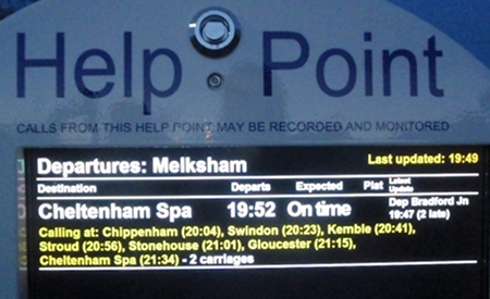 The provision of this system is part of the franchise commitment made by First, so it's something they had to do ... except that they've gone one step further at Melksham in that they've put a "with screen" system in rather than just a single button / get a message replacement. I don't know how much influence our positive requests, pointing out the catchment of 25,000 people and the proposals for a lot more trains, influenced their decision to go that bit further ... but as far as we're concerned, it's a lot further and I want to say a big THANK YOU to First for doing this, and showing faith in the TransWilts service via Melksham.