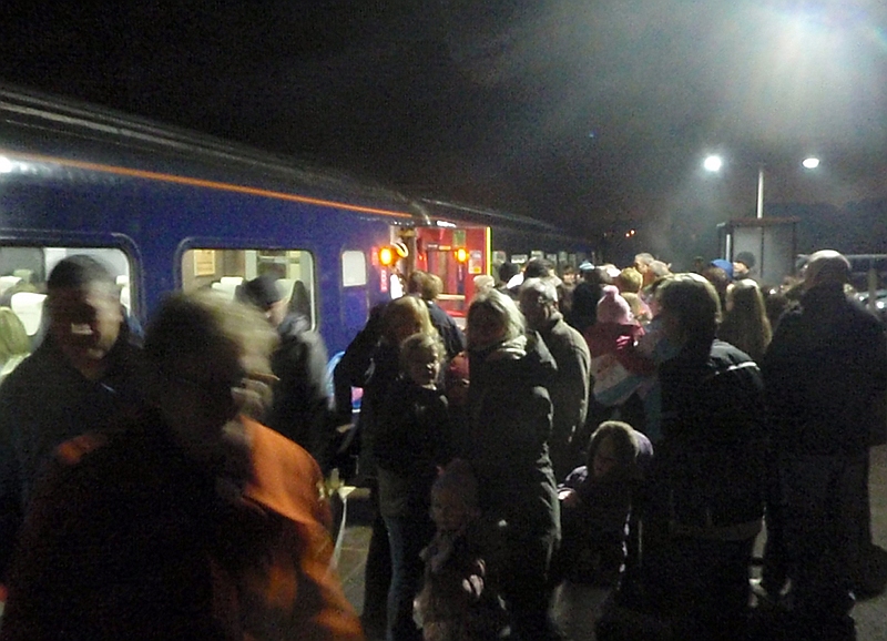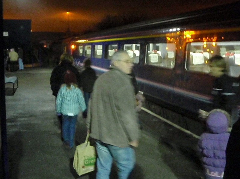 Note that the 18:19 (Sunday) from Swindon, on which we travelled back, is a service that's provided by First Great Western in excess of the government's minimum level specification - it was added to the timetable after requests from the Melksham Railway Development Group and the Save the Train Campaign - our thanks to First Great Western for their continued provision of this service; it's quite a success - we've had to reduce the number of Santa tickets sold this year due to fears of overcrowding.