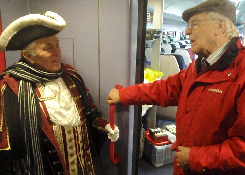 First Great Western provided an intercity 125 train last Sunday on the 17:05 from Westbury to Swindon. This train formed the Santa Special trip organised by the Melksham Railway Development Group - with 80 adults and children joining the train at Melksham for the ride to Swindon and back. Santa Claus, and the Melksham Town Crier, both found time in their busy schedules to join us on the train, and a great time was had by all.