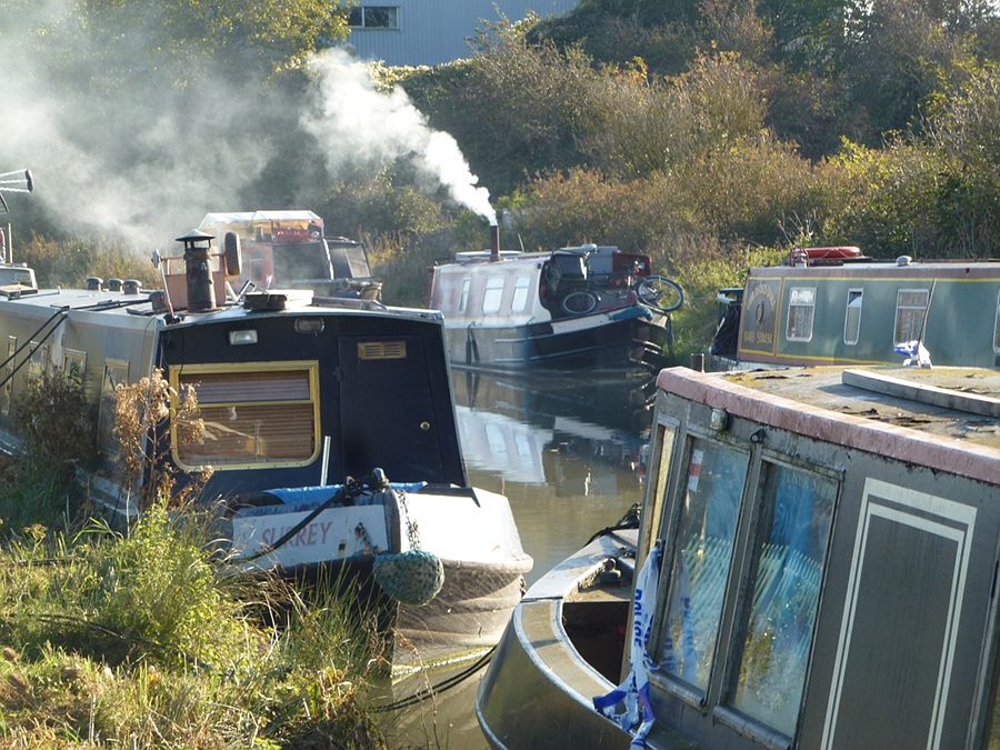 Although the river's not navigable from Bradford-on-Avon, the Kennet and Avon canal which follows the same valley most certainly is these days. As the river and canal briefly come close together, we climbed a high embankment and continued our walk canal-side. The canal is very much a main walking and cycling artery, leaving the riverside pastures to look like a sleepy backwater that time's forgotten.