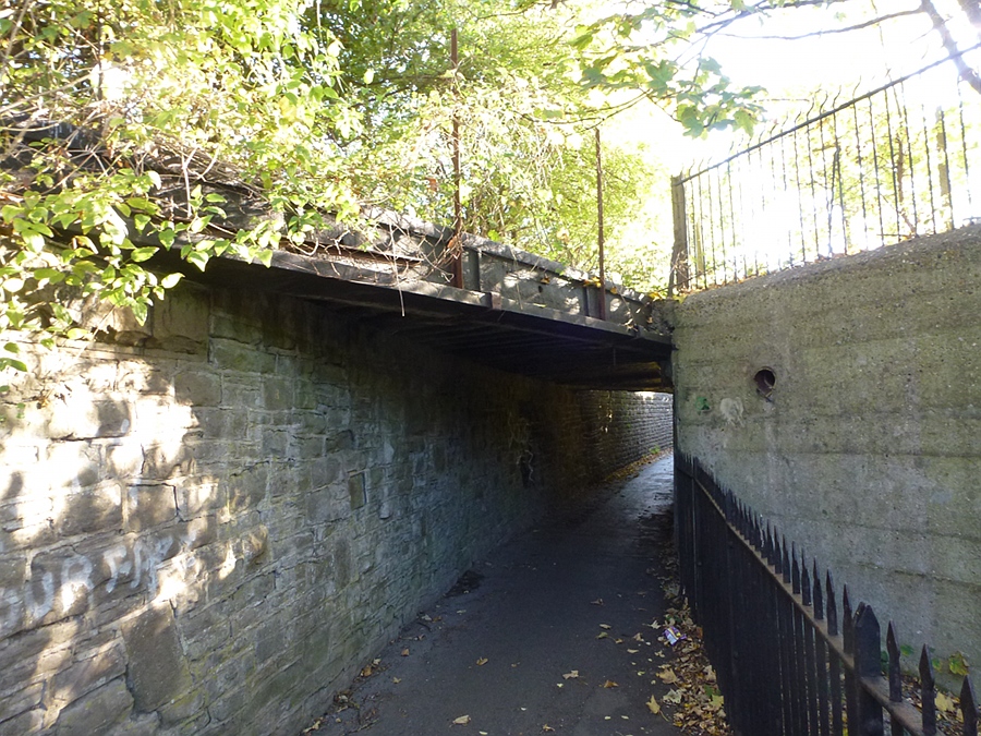 Like Bradford-on-Avon, Trowbridge station has a rich history, and Rob was telling us about some of this - how the loco shed had housed up to 20 locomotives in its time, how the car park had been a major goods yard, and how an extra branch had served the bacon factory. Indeed, the bridge that lead this line over one of the footpaths from the north west into the town is still in place, showing an interesting and historic construction, and sadly providing a dark alleyway that's well decorated with graffiti and may not be the most welcoming place at night.