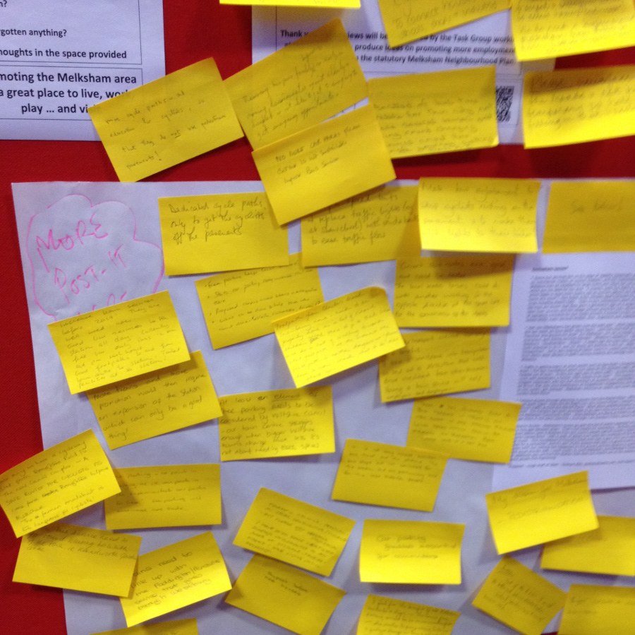 On Travel and Transport, where I was manning a stand for the TransWilts Community Interest Company, I had a good view of the theme board where people were posting notes of ideas, and it was good to see a sea of yellow.