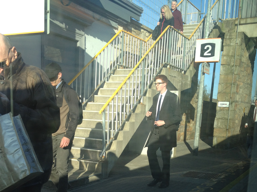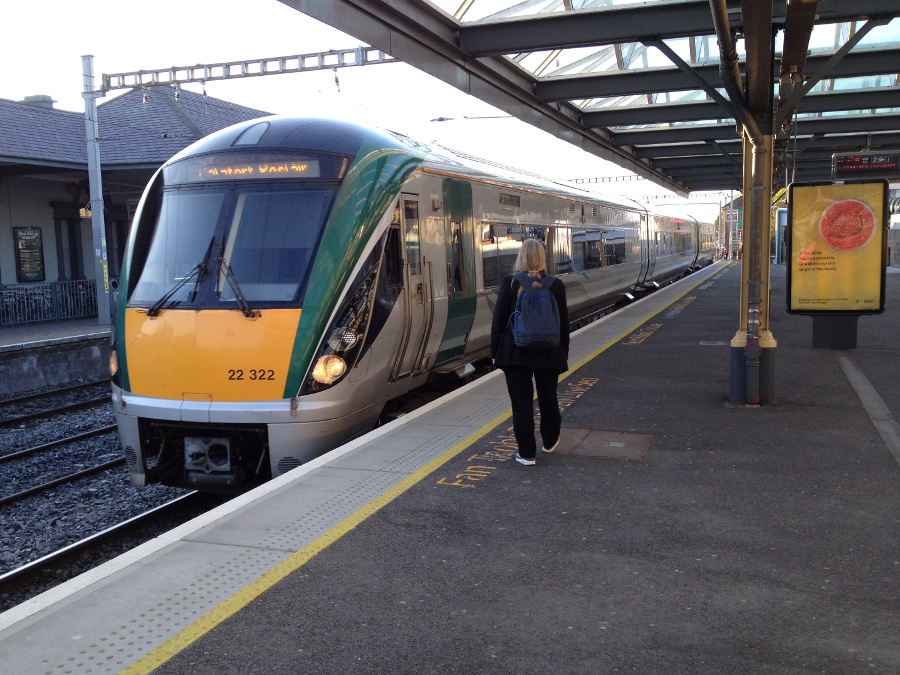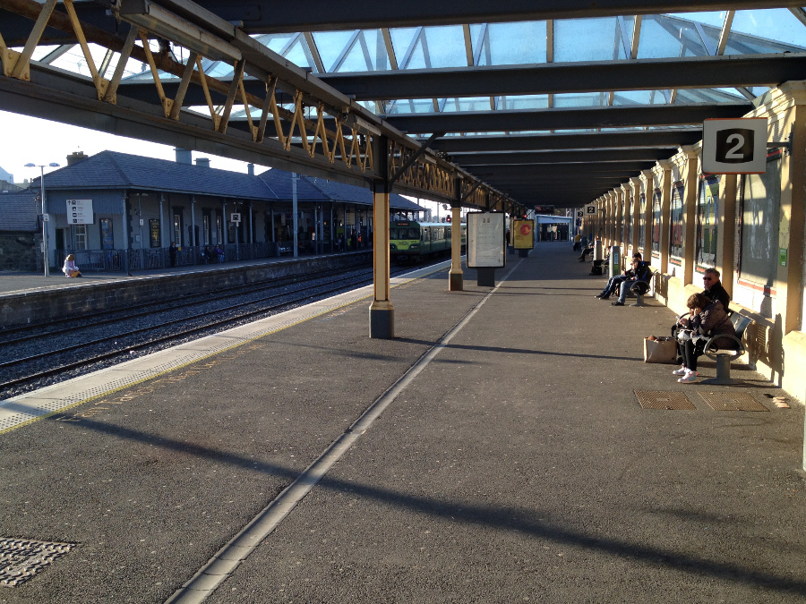 I walked through Dublin - to Tara Street, the smaller intermediate station betwen the north-facing Conely and the south-facing Pearse main stations, and boarded the DART - Dublin Area Rapid Transit - service running from Howth to Bray. A well used service - trains every 15 minutes; busy, electric and somewhat mature and basic.