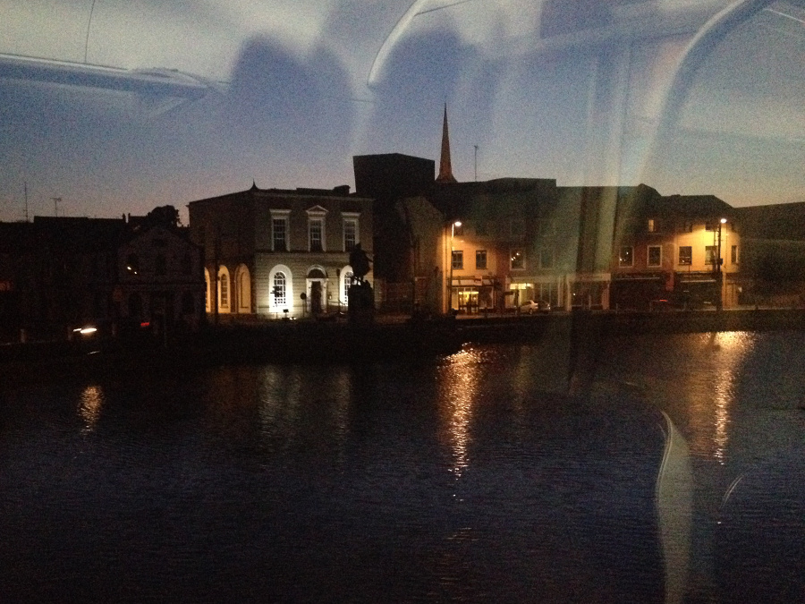 At Eniscorthy, we crossed / passed the train that had gone town as far as Wexford an hour ahead of us, and carried on down the single line to Wexford - by now in the dark. Again, the station's on the waterfront and having dropped off eight passenger we carried on - unfenced street running and a bridge across a leg of the old harbour