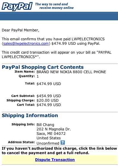 as the HTML that created the "Dispute Transaction" button ... the numbered IP address is clearly wrong (but beware - this button could have a rogue named server similar to Paypal's).